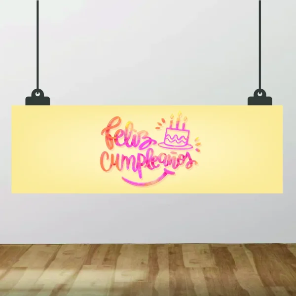 Afiche 13×40 pulgadas (32.5×101.50 cm), pedido mínimo 2 unidades. Impresión a color a una cara (tiro) en papel foldcote 12.