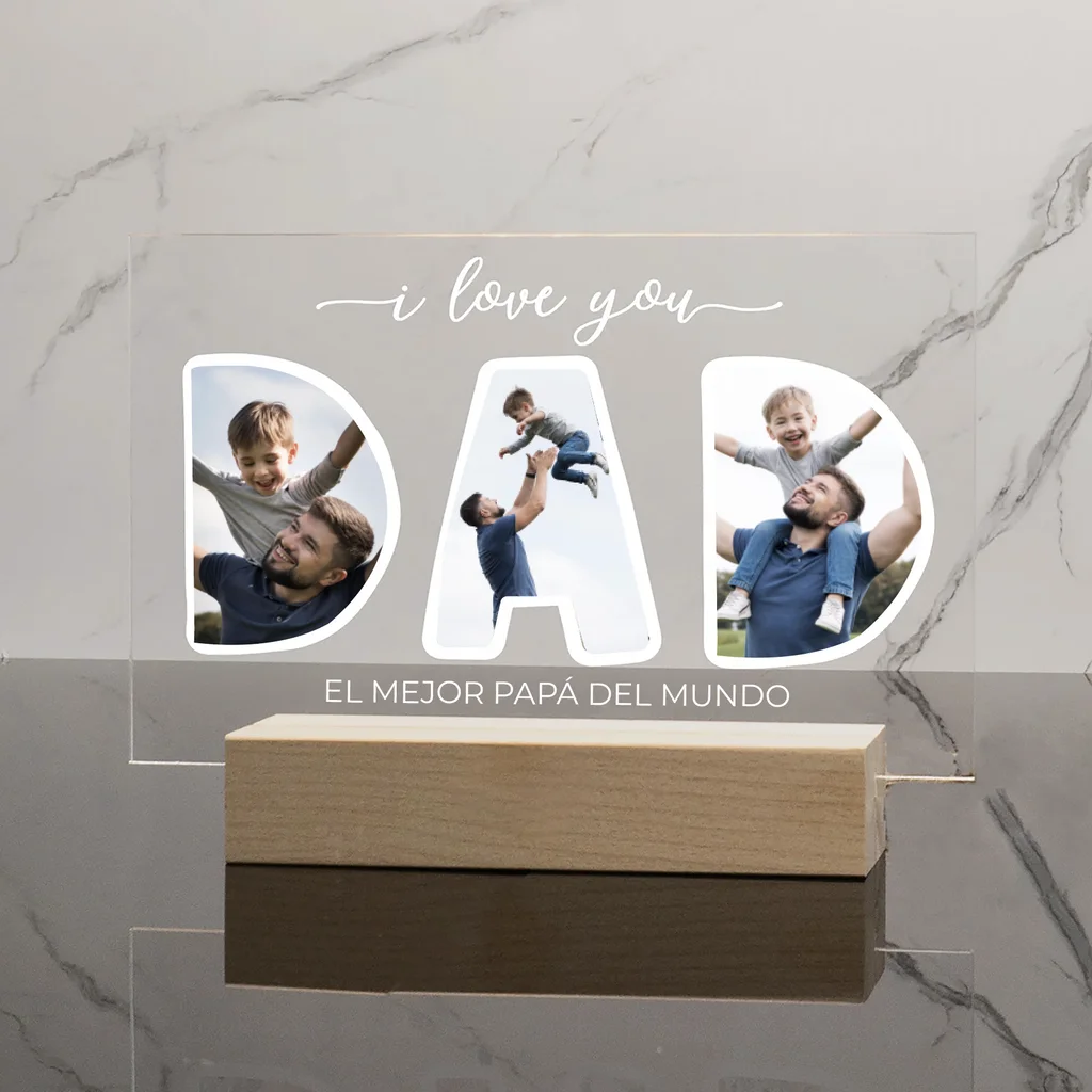 Acrílico con impresión UV full color medidas 12.5×16 cm con base en madera para sostenerse. Perfecto para regalos, eventos, celebraciones o decoración del hogar.